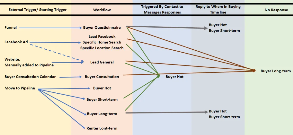 The Buyer Lead Nurture is a series of workflows, emails, text, tags, and pipelines that interact to manage communication with new buyer contacts.